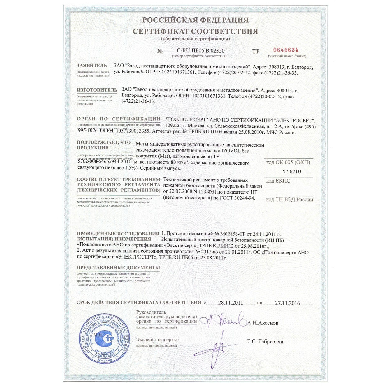 Производитель ИЗОВОЛ